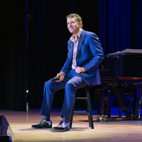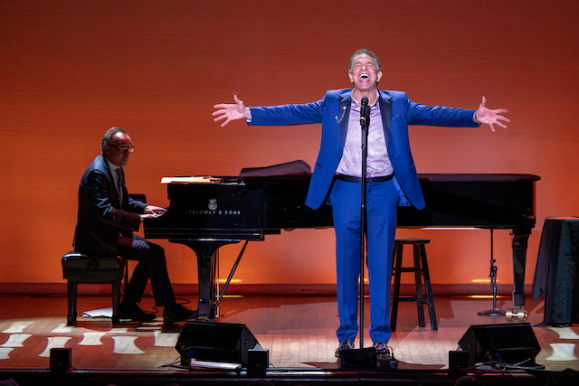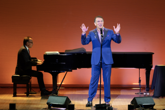 From there, Mitchell launched into a buoyant “There’s No Business Like Show Business,” playfully reshaping its familiar rhythms as he strutted across the stage. That theatrical ease carried into “I, Don Quixote,” where he transformed the microphone stand into a lance, cheekily evoking his award-winning turn in Man of La Mancha. The gesture was emblematic of his charm—part virtuosity, part mischief, entirely engaging.