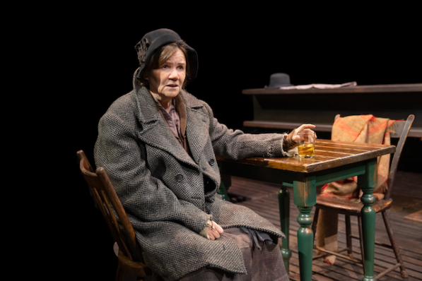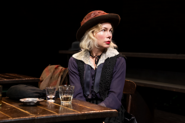 Much of this production’s success rests, inevitably, on its casting. Screen star Michelle Williams—who reunites here with director Thomas Kail—proves quietly riveting as the former prostitute struggling to reclaim her life. Long admired for her chameleonic versatility and emotional transparency, Williams once again reveals her rare ability to inhabit a wounded soul shaped by loss and loneliness. Her Anna mesmerizes not through glamour, but through Williams’s gift for disappearing into a role: a lowered gaze, a guarded stillness, a fleeting flicker of resolve. When she first enters Johnny-the-Priest’s saloon and growls, “Gimme a whiskey—ginger ale on the side. And don’t be stingy, baby,” the line lands with the arduous defiance of a young woman battered by experience yet determined, at all costs, to survive.