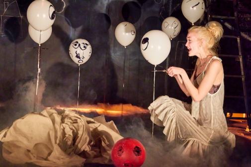 Visual metaphors employed in Our Class help to translate the story’s dark events to the stage, allowing the audience to experience the pogrom’s horror without replicating its actual gore. Case in point: the actress Gus Birney, playing Dora, snips the strings of dozens of balloons on stage to represent the death of the Jewish people in the barn. Indeed, it gets to the soul with more impact than if the real event were replicated before our eyes.