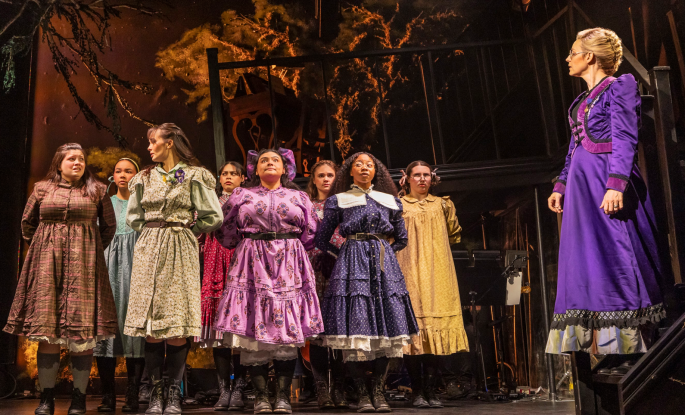 Two men aid in the search: high-born Michael (Reese Sebastian Diaz, eager and touching) and working-class Albert (Bradley Lewis, full-bodied). Michael is seeking adventure and meaning in his life; Albert, his long-lost orphaned sister who turns out to be one of the Appleyard students. They search in vain, but are given several beautiful songs, particularly Albert’s “Bertie,” sung with the sister he sadly and tragically never meets.