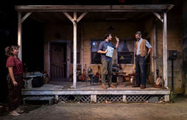 John Salutz’s lighting does a beautiful job of bringing everyone through an evening into the morning, making a point of haloing the big, emotional moments. Spot-on costumes from Grace Jeon seamlessly signal who everyone is, from Beckett and Mira’s Brooklyn-hipster duds to Edgar’s Vietnam Veteran ball cap and clip-on suspenders. Director Sherry Stregack Lutken moves her cast up, over, and around that porch as if it were natural as breathing. Transparent sound design from Sun Hee Kil hits all the right notes.