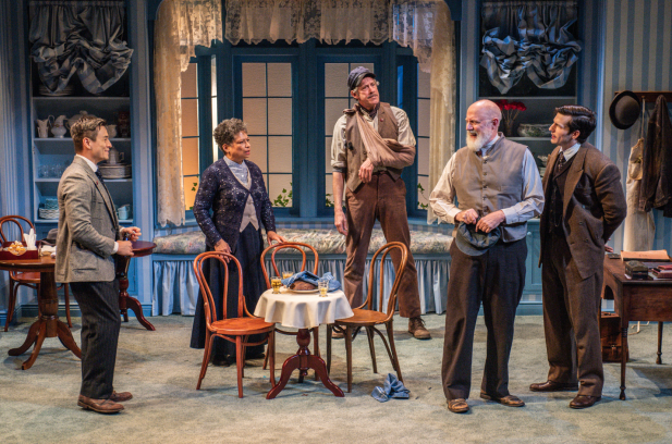 Complications: The Munnings hired Joe Wrigley (Sean Runnett), a blustery local, to help with an upcoming wedding, but he broke his arm. His daughter Martha (Grace Guichard) begs them to pay him anyway, and when they refuse, further complications ensue, leading up to, get this, the engagement of Martha and Zack. It takes two of three intermission-less acts to sort things out and restore the Munning boys to their proper partners.